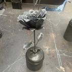 La Forge des Roses tient son nom de sa spécialité : la reproduction libre et détaillée de formes naturelles. Fleurs de fer, feuilles ciselées, serpents, champignons — chaque pièce est une étude du vivant, traduite dans le feu.